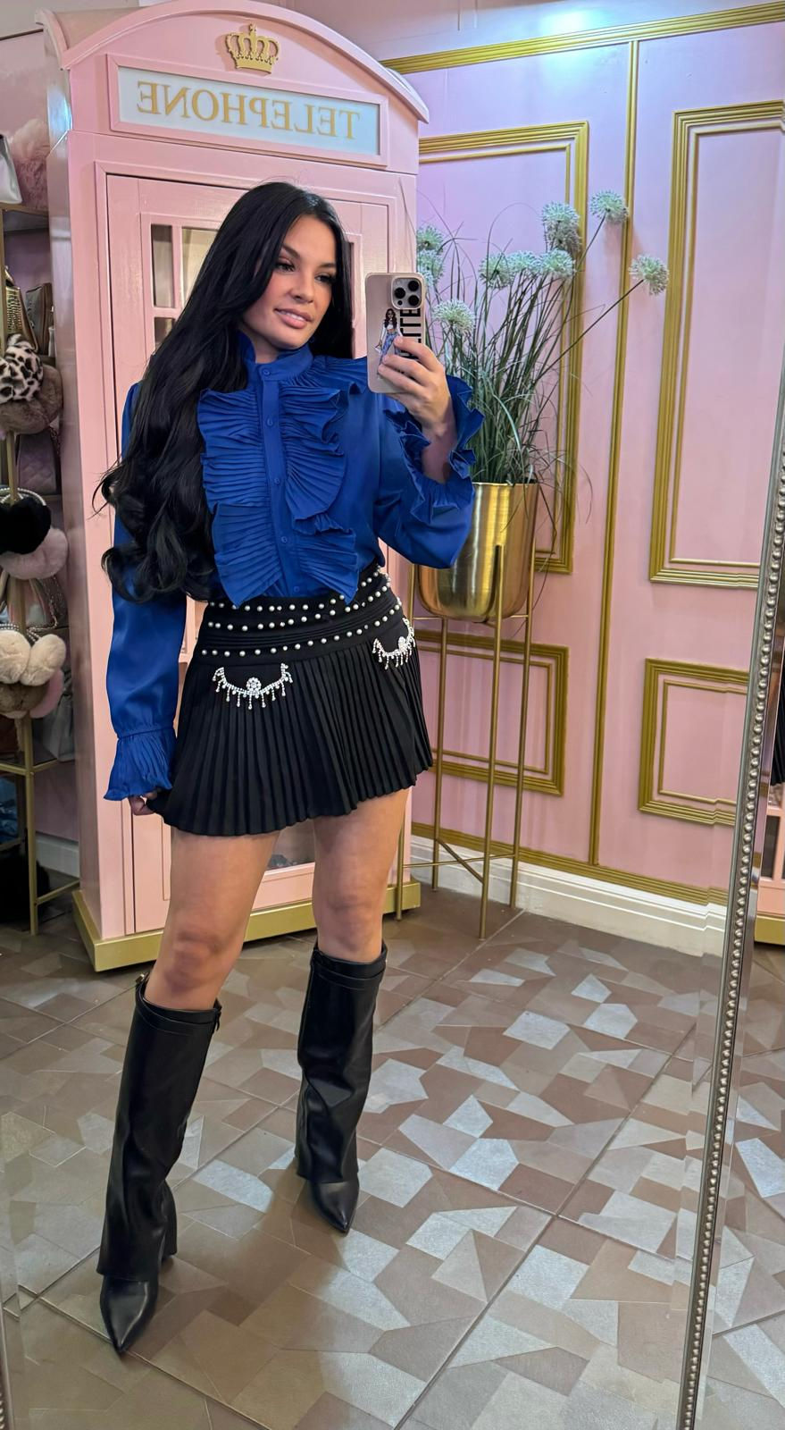 IVY Black Embellished Diamantés And Pearl Skirt